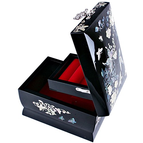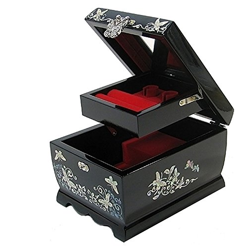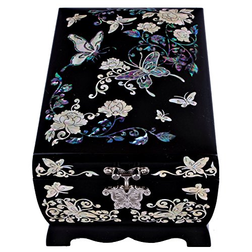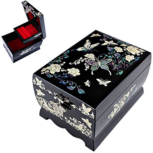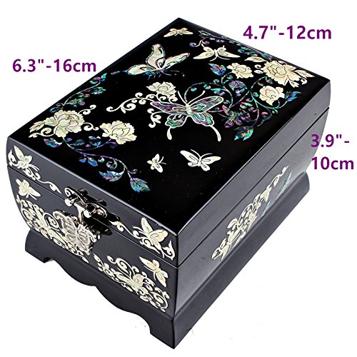 Jewelry Boxes Women Jewelry Organizer Gift Music Box Mother Of Pearl Butterfly Handcraft W1001 Black