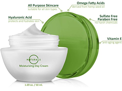 -. Feature : Moisturizing Day Cream formulated to provide protection throughout the day, enriched with h.e.m.p Seed Oil, which is a great source of Omega-3 and Omega-6 fatty acids. / This day cream is made with Hyaluronic Acid that hydrates skin, adding a protective barrier that prevents moisture loss. h.e.m.p Seed Oil is also added, reducing wrinkles and restoring moisture to dry skin. / Made with premium moisturizing ingredients: h.e.m.p Seed Oil, Aloe Vera, Hyaluronic Acid, Shea Butter, Jojoba Oil, Vitamin E, Sacha Inchi Oil and Squalane. / No S.L.S/S.L.E.S, Silicone, Petrolatum, Parabens, Propylene Glycol and No Animal Testing. / 100% Customer Satisfaction - 100% Money-Back Guaranteed!