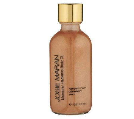 -. Feature : josie maran moroccan radiance body oil / creme brulee - 4 oz - new in box / rose gold radiance - rich shimmering - a blend of nourishing oils / lightly scented - organic / made in the USA