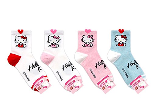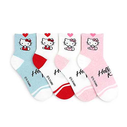 Choice !! Women's Hello Kitty Design Socks With IntypePouch (Heart Top 4pairs(HO69))