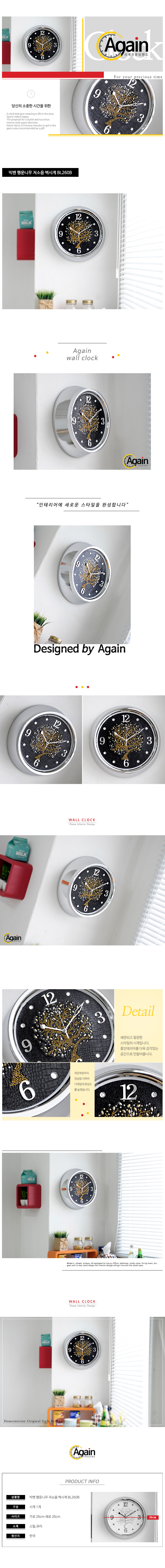 - 품명 및 모델명빅벤 행운니무 저소음 벽시계 BL260B