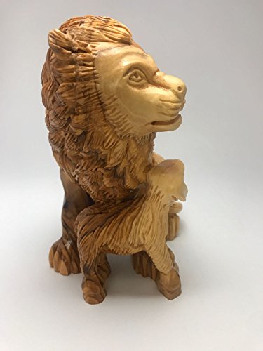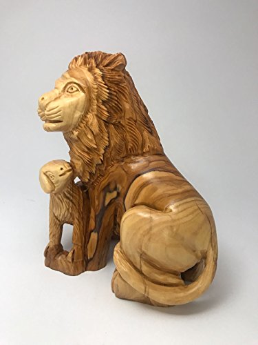 olive wood lion with lamb (olive wood)