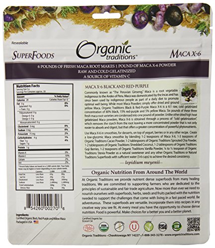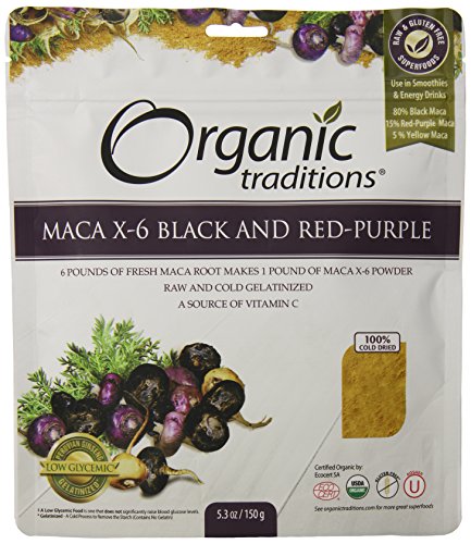 -. Title : Organic Traditions Organic Gelatinized Raw 6:1 Maca X-6 Powder, Black and Red-Purple, 5.3 Ounce