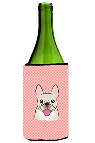 Checkerboard Pink French Bulldog Wine Bottle Beverage Insulator Hugger BB1238LITERK