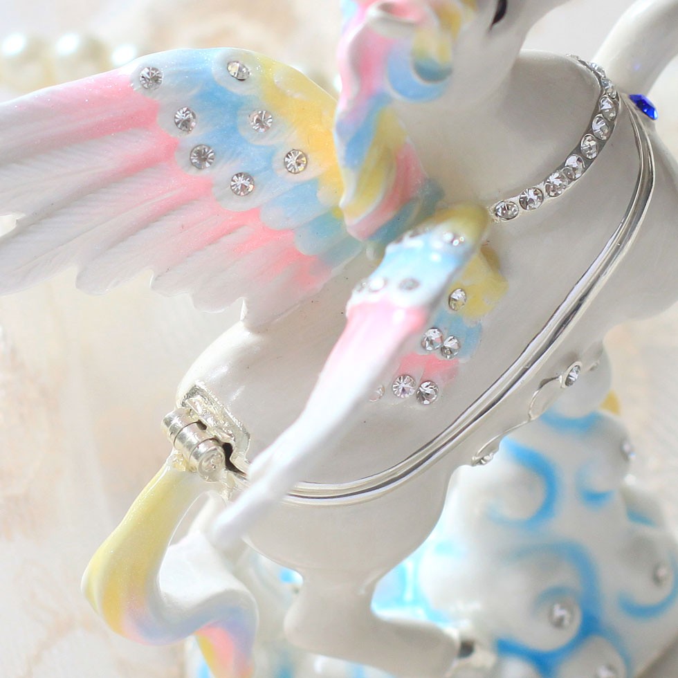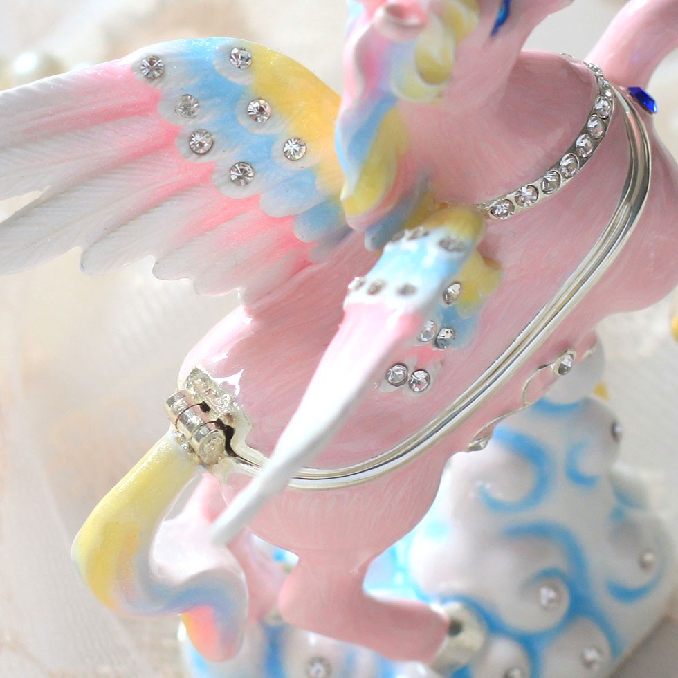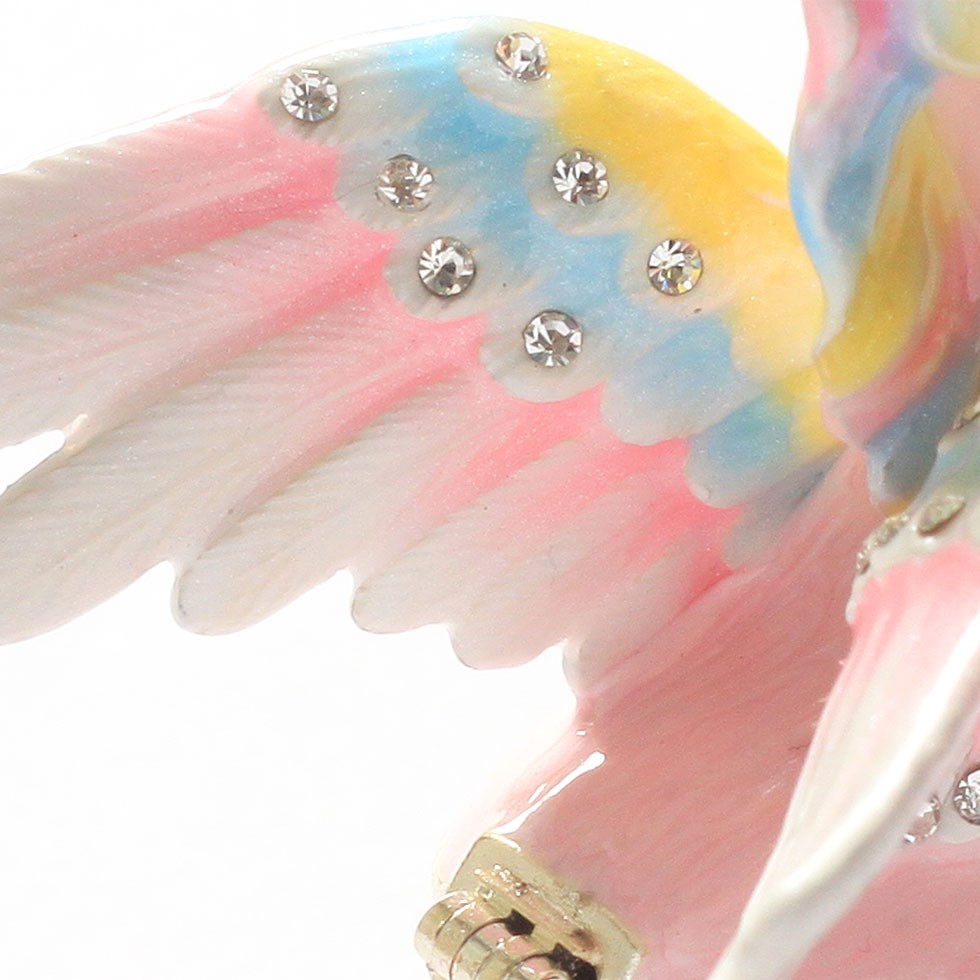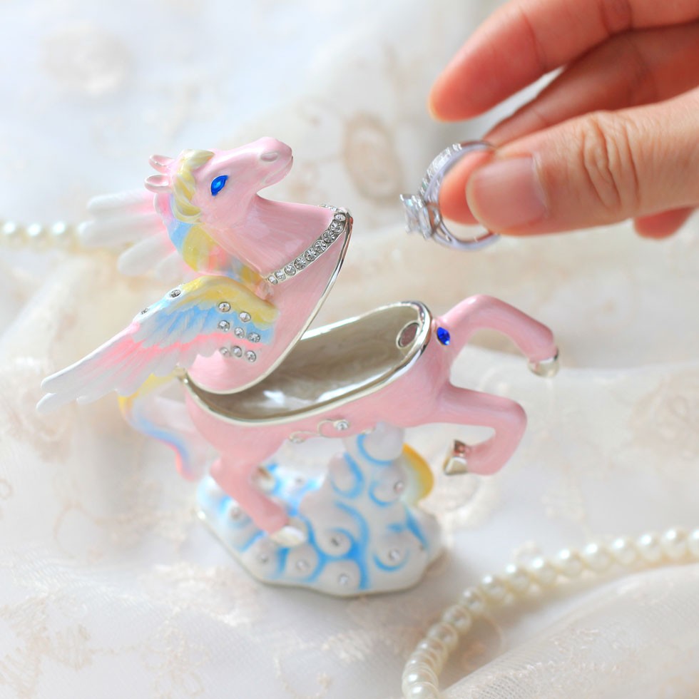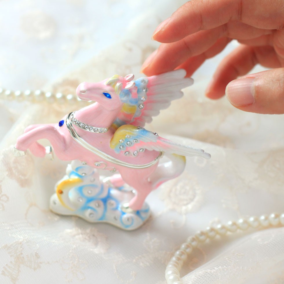 | ジュエリーボックスと言えば、指輪やピアス、ネックレスなどのアクセサリーを入れる引き出し型のケースを思い浮かべる方が多いかもしれません。 ピィアースのジュエリーボックスは、動物や花などをモチーフに作られ、合金製でずっしりとした重さがあります。また高品質のクリスタルガラスを贅沢に使用。まるでジュエリーボックスそのものが宝石のような、高級感溢れる仕上がりです。 小物入れとしても使えるように開閉口には磁石が取り付けてあり、アクセサリーなどなくしやすいアイテムの収納ができます。キラキラと美しく輝く宝石箱は、そのまま飾って楽しめるインテリア雑貨として多くの方に愛されています。 国内トップクラスのジュエリーボックスメーカーであるピィアースは、2004年ごろから本格的に宝石箱の製造を始め、現在のジュエリーボックスはなんと300種類以上。大規模展示会でもご好評いただいており、全国有名百貨店でも販売されています。 自社工場でひとつひとつ丁寧に手作りし、原型作成、研磨、加工、着色、小さなクリスタルガラスの取り付けなども全て手作業で行われるこだわりのハンドメイド品。完成後は厳しい検品の後、丁寧に梱包作業をしお客様にお届けしております。 ピィアース商品は、全国有名百貨店および全国有名宝石店チェーンにてお取り扱いいただいている高品質商品です。 ★自分へのご褒美に…コレクションして並べて飾ると、さらにかわいらしさUP! ★恋人へのプレゼント…中にアクセサリーを入れて、サプライズな贈り物として ★家族への感謝ギフト…お母さんや姉妹へ、日頃のありがとうの気持ちを込めて ★誕生日プレゼント…お友達の喜ぶ顔が見たいから、いつもと違うキラキラギフトを ★小さな女の子へ…まるでお姫様が使っているようなキラキラ宝石箱は女の子の憧れ! |