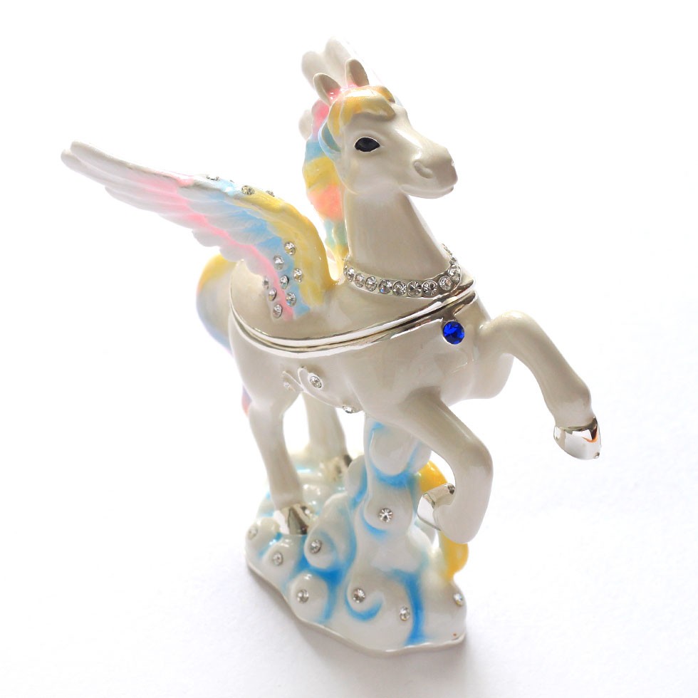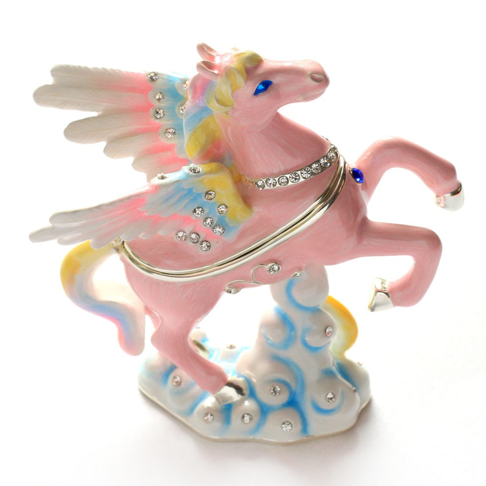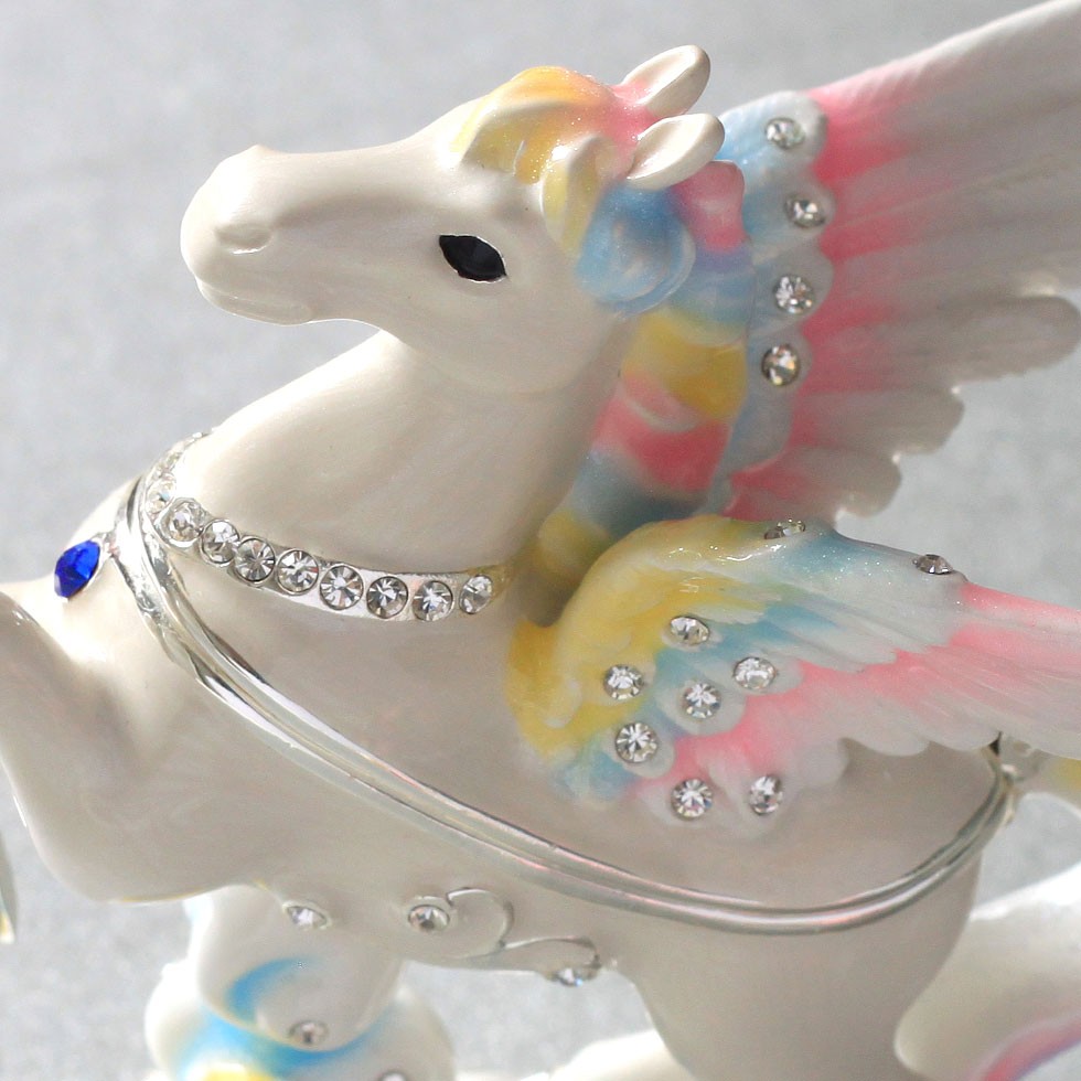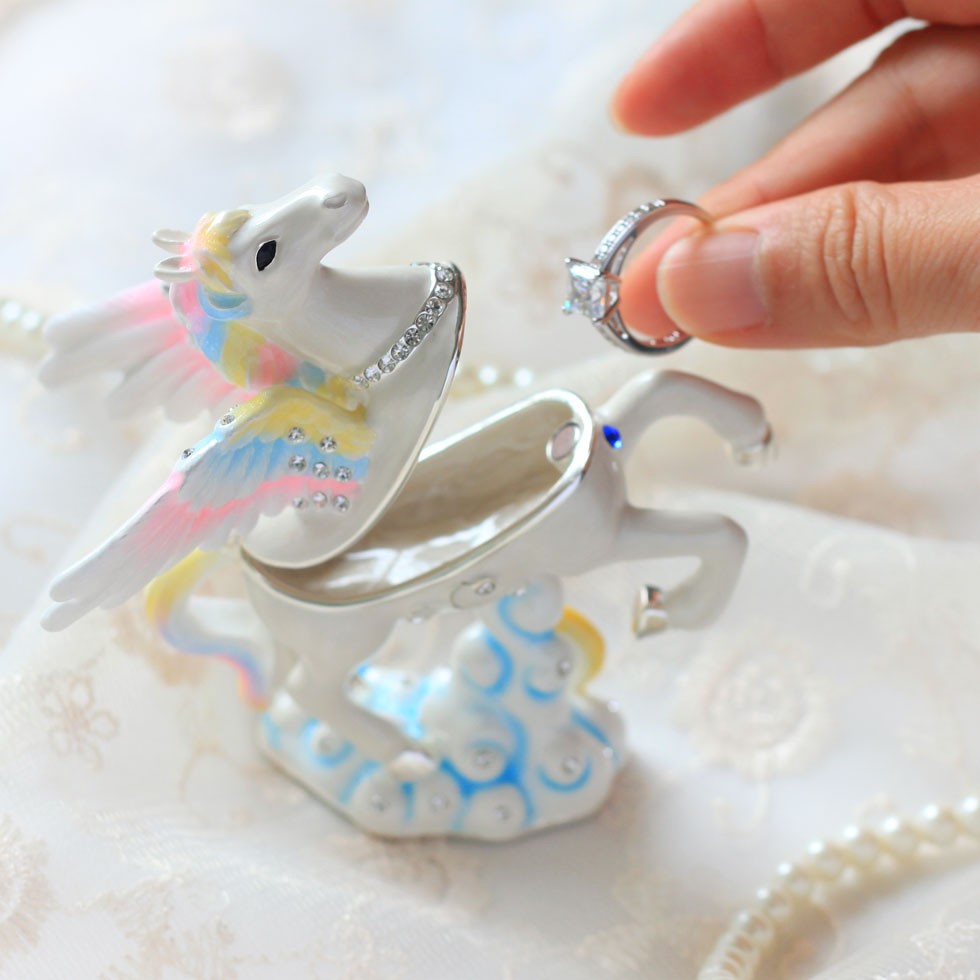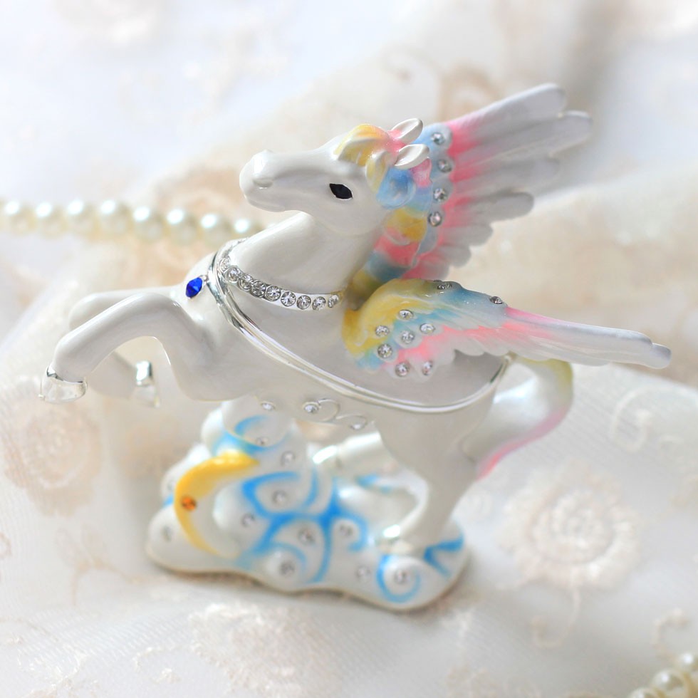 | ジュエリーボックスと言えば、指輪やピアス、ネックレスなどのアクセサリーを入れる引き出し型のケースを思い浮かべる方が多いかもしれません。 ピィアースのジュエリーボックスは、動物や花などをモチーフに作られ、合金製でずっしりとした重さがあります。また高品質のクリスタルガラスを贅沢に使用。まるでジュエリーボックスそのものが宝石のような、高級感溢れる仕上がりです。 小物入れとしても使えるように開閉口には磁石が取り付けてあり、アクセサリーなどなくしやすいアイテムの収納ができます。キラキラと美しく輝く宝石箱は、そのまま飾って楽しめるインテリア雑貨として多くの方に愛されています。 国内トップクラスのジュエリーボックスメーカーであるピィアースは、2004年ごろから本格的に宝石箱の製造を始め、現在のジュエリーボックスはなんと300種類以上。大規模展示会でもご好評いただいており、全国有名百貨店でも販売されています。 自社工場でひとつひとつ丁寧に手作りし、原型作成、研磨、加工、着色、小さなクリスタルガラスの取り付けなども全て手作業で行われるこだわりのハンドメイド品。完成後は厳しい検品の後、丁寧に梱包作業をしお客様にお届けしております。 ピィアース商品は、全国有名百貨店および全国有名宝石店チェーンにてお取り扱いいただいている高品質商品です。 ★自分へのご褒美に…コレクションして並べて飾ると、さらにかわいらしさUP! ★恋人へのプレゼント…中にアクセサリーを入れて、サプライズな贈り物として ★家族への感謝ギフト…お母さんや姉妹へ、日頃のありがとうの気持ちを込めて ★誕生日プレゼント…お友達の喜ぶ顔が見たいから、いつもと違うキラキラギフトを ★小さな女の子へ…まるでお姫様が使っているようなキラキラ宝石箱は女の子の憧れ! |