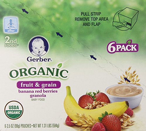 -. Title : Gerber 2nd Foods Organic Pouch, Banana Red Berries Granola, 3.5 Ounce (Pack of 6)