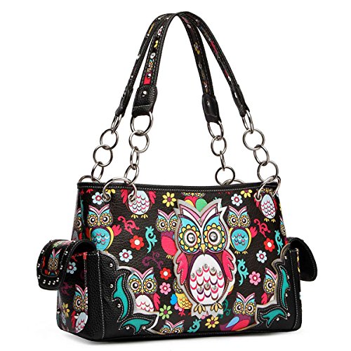 Western Owl Printed Shoulder Bag Women Top Handle Totes Handbags