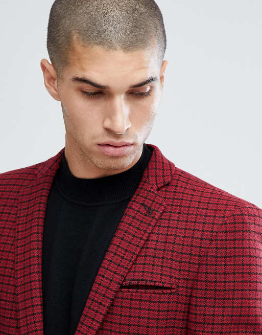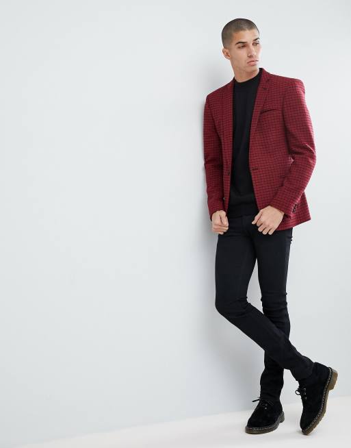 ASOS Super Skinny Blazer In Red Wool Mix Mini Check