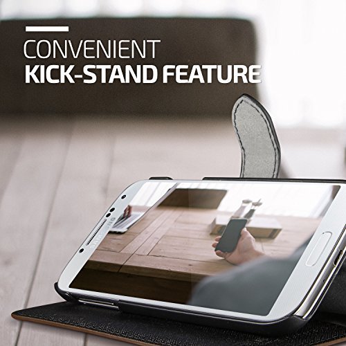 Galaxy S4 Case, Lific [Saffiano Diary][Brown/Black] - [Leather Wallet][Card Slot][Kickstand] For Samsung Galaxy S4