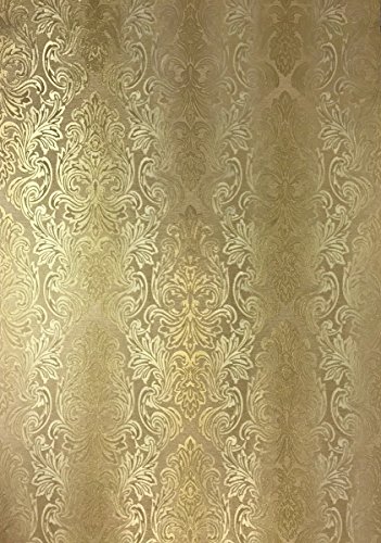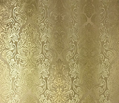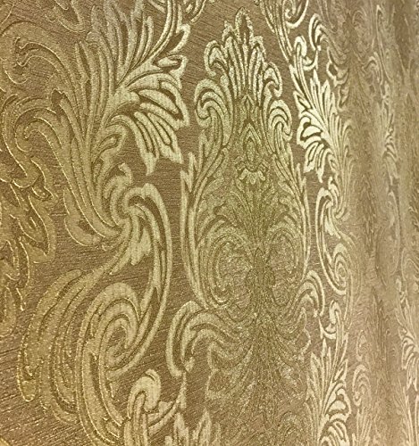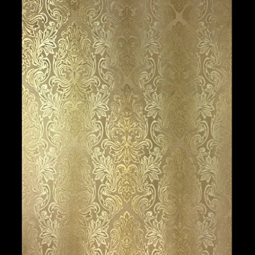 -. Title : QUADRUPLE ROLL 113.52sq.ft (4 single rolls size) European Slavyanski wallcovering washable victorian pattern Vinyl Non-Woven Wallpaper gold textured stripe wall decor glitters metallic 3D damask