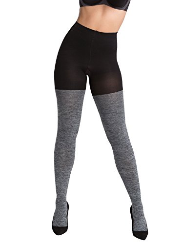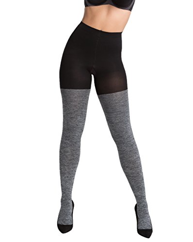 The Spanx Marled Tights will carry you from work to play with its all-occasion design. Boasting a classic heathered style and innovative control top, these tights smooth your lower half with ease. Tights Non-binding, stretch waistband Slim's built-in, control top shapes your tummy, hips, thighs, and rear Cotton lined gusset makes panties optional and eliminates VPL Heathered design Seamless toes Hand wash, line dry Gusset: 62% Cotton, 38% Spandex/Elastane 63% Nylon, 27% Polyester, 10% Spandex/ElastaneFeature