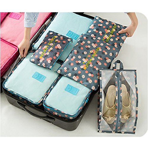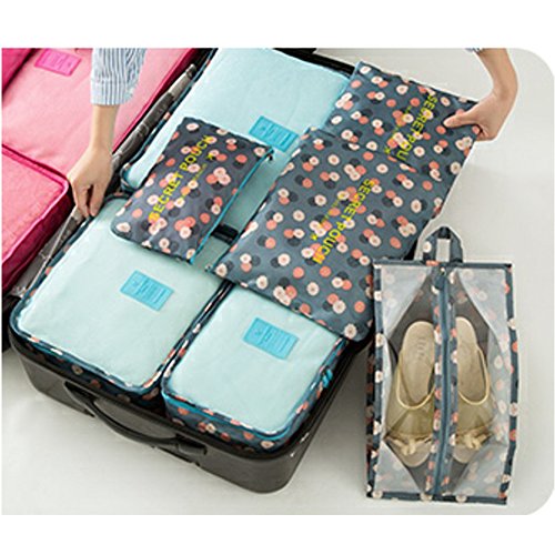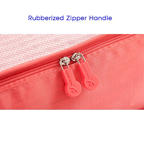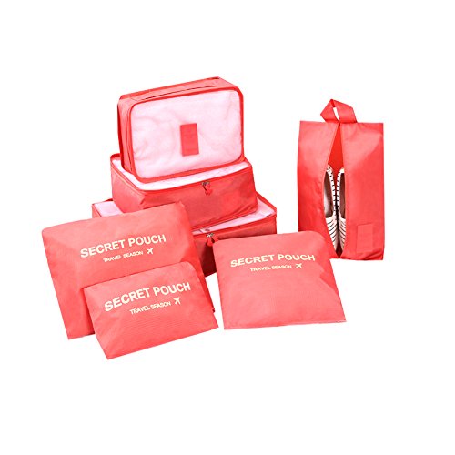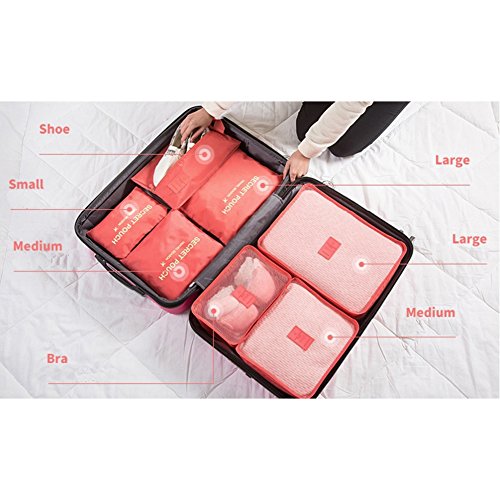 Your best travel assistant: Package list: Mesh bag: Large (15.7'' x 11.8'' x 4.7'') Medium (11.8'' x 10.6'' x 4.7'') Small (11.8'' x 7.9'' x 4.7'') Compression pouch: Large (13.4'' x 10.2'') Medium (10.2'' x 9.4'') Small (6.7'' x 5.5'') Shoes bag: (13.78'' x 8.27'') Washing tips: In order to avoid damage to the waterproof coating, reducing the water proof effect, please do not use detergent or machine wash to clean. Washing with clean water is available as the fabric is environmental protection material.Feature