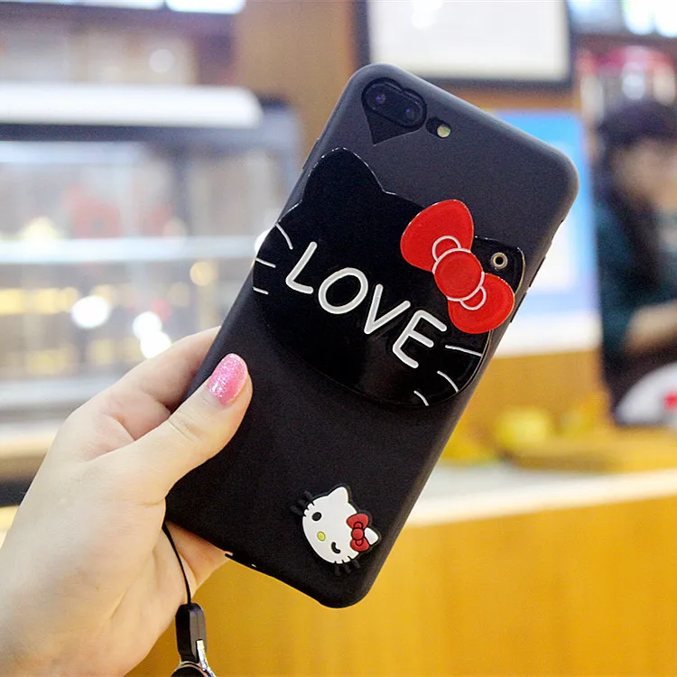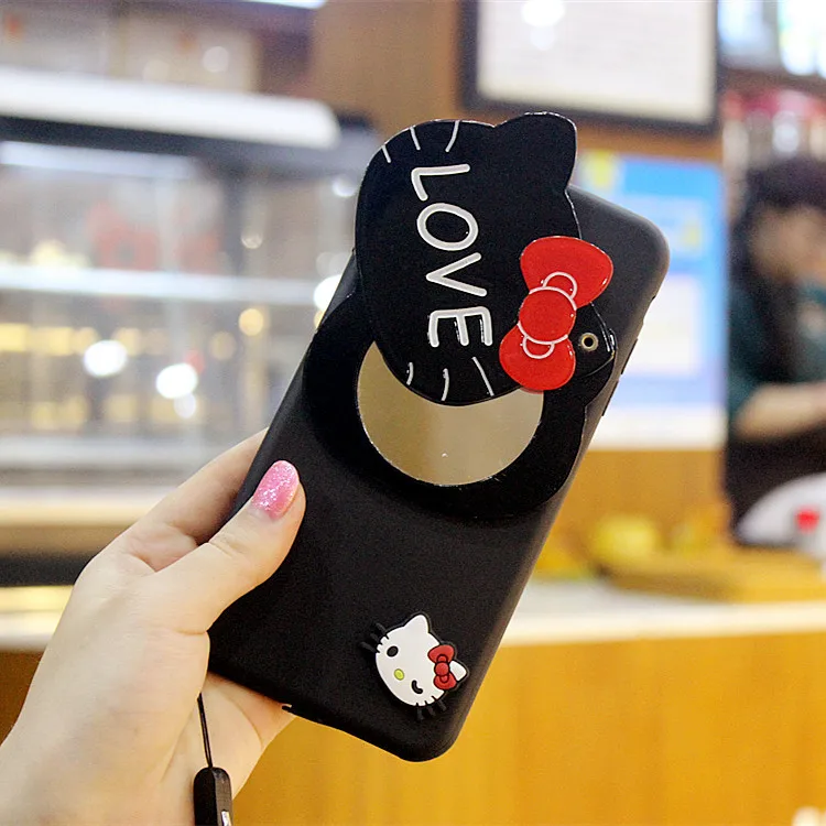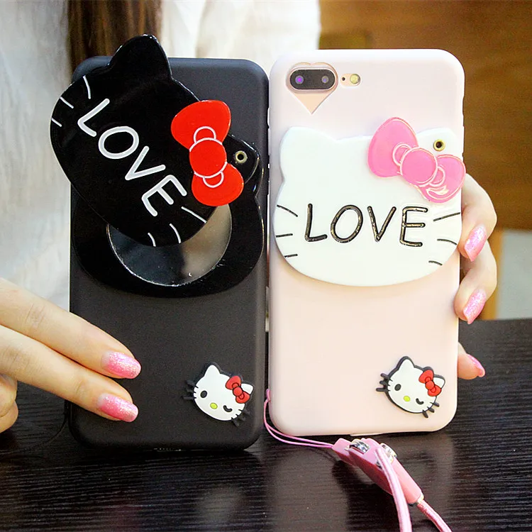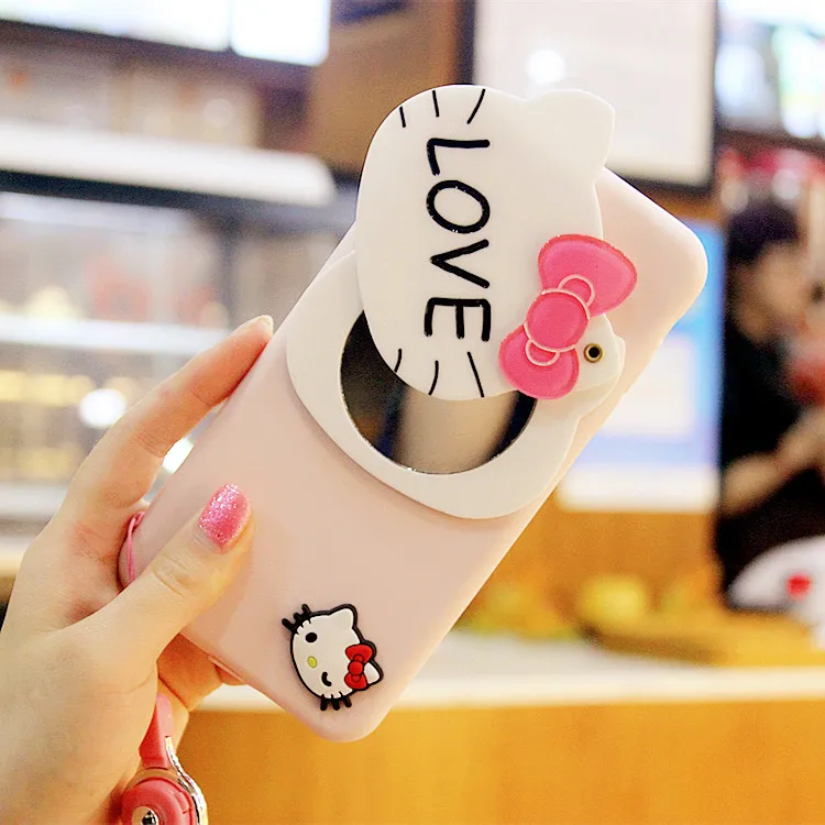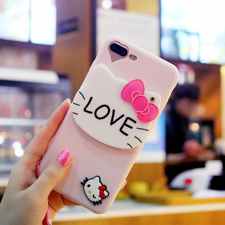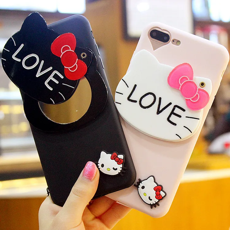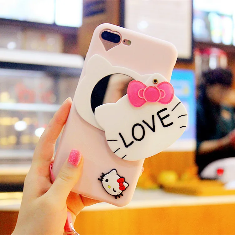 3dハローキティミラー電話ケースiphone用7 7プラスケースシリコーン漫画ソフトtpuかわいいカバーのためのiphone 6 s 6プラス5 s