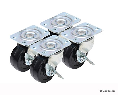Caster Classics 2-inch Locking Low Profile HD Rubber Wheel Plate Casters - 4-Pack