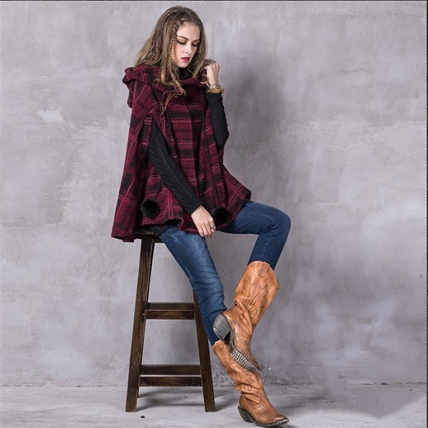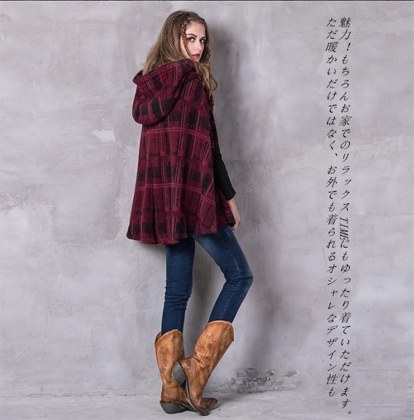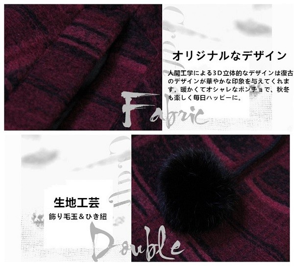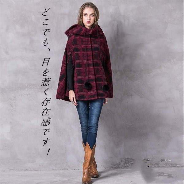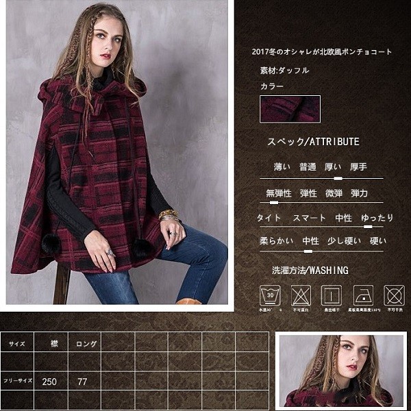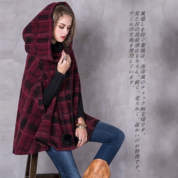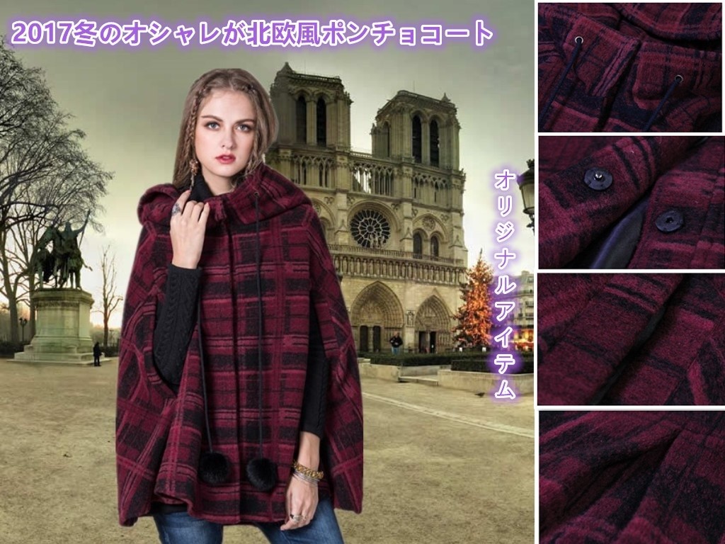 冬のオシャレが北欧風のおチェック柄の飾りワンピースコートの登場です。ON OFFで表情が変わります。ゴージャスにもカジュアルにも着こなせる大人のポンチョコートオススメの一枚です。袖の付いたストール、と言っても良い様な個性的でオシャレ感のあるポンチョ。ラインのデザインが華やかな印象を与えてくれます。暖かくてオシャレなポンチョで、秋冬も楽しく毎日ハッピーに。メイン素材:100%ウールフリーサイズ: 襟丈250 着丈77