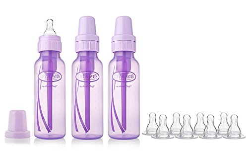 -. Title : Dr. Brown's Standard Lavender 8oz Bottles - 3 Ct and 8 - Level 2 Nipples