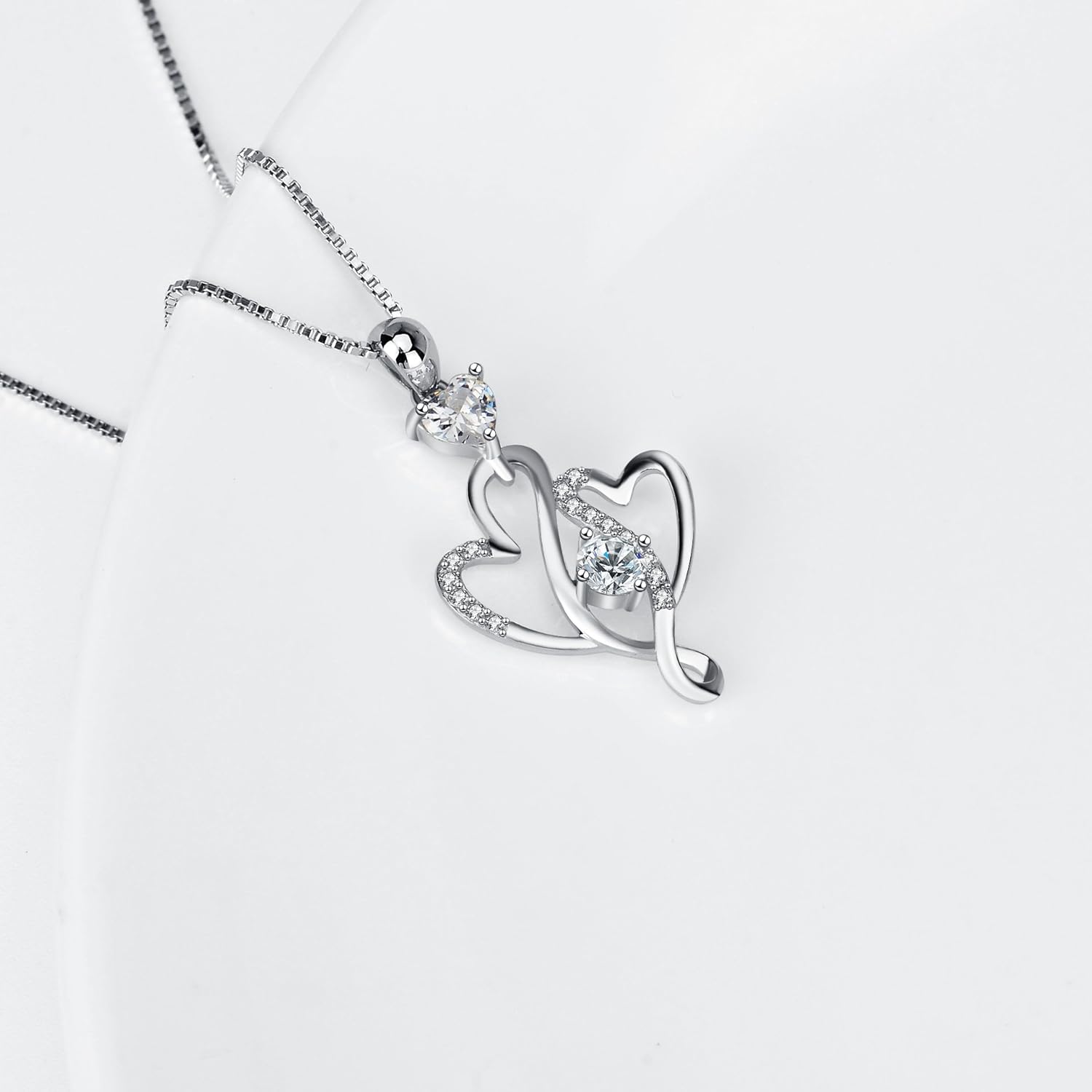❤そっと寄り添う二つのハートに18粒のジルコニアが彩るダブルハートネックレスです。