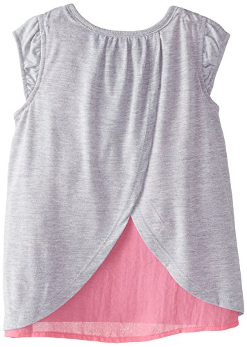 Disney Little Girls' Frozen Sisters Forever Girls Flutter Short Sleeve Top with Chiffon Back Insert, Heather Grey, 4