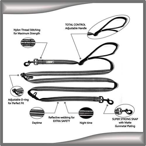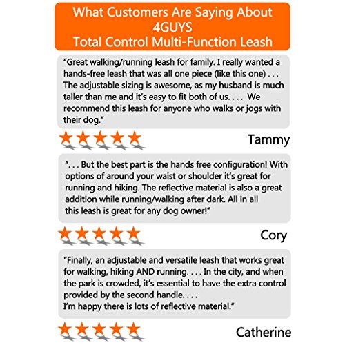 Studio : 4GUYS Publisher : 4GUYS Binding : Misc. Product Description ?Quick stop adjustable handle to quickly control your dog in an instant. ?Easy Attach to ANY collar, harness and no-pull walking devices. ?Super Strong Snaps on each end allows connection to the front, back or both connection points of any harness. ?Quick and Easy to put on off you and your dog. ?Get Active - Designed with our most active customers in mind, we've made the Total Control Multi-Function Safety Leash for the dog owner who is on the go. ?Be Safe- We know that most people will be using this product in the later hours of day. With the dual reflective thread throughout, the oncoming lights will reflect and will ensure that you and your dog will be seen by traffic even after the sun has gone down. ?Hands Free- waist or over the shoulder wearing design provides comfort and freedom for you and your pet when running/walking/hiking. ?2 Dog Walking- The leash can be attached to two dogs of any size with the sturdy metal clasps. The leash is perfect for two medium or two large dogs. ?Guaranteed to be the best leash for hands-free jogging, walking or hiking with your dog. 0