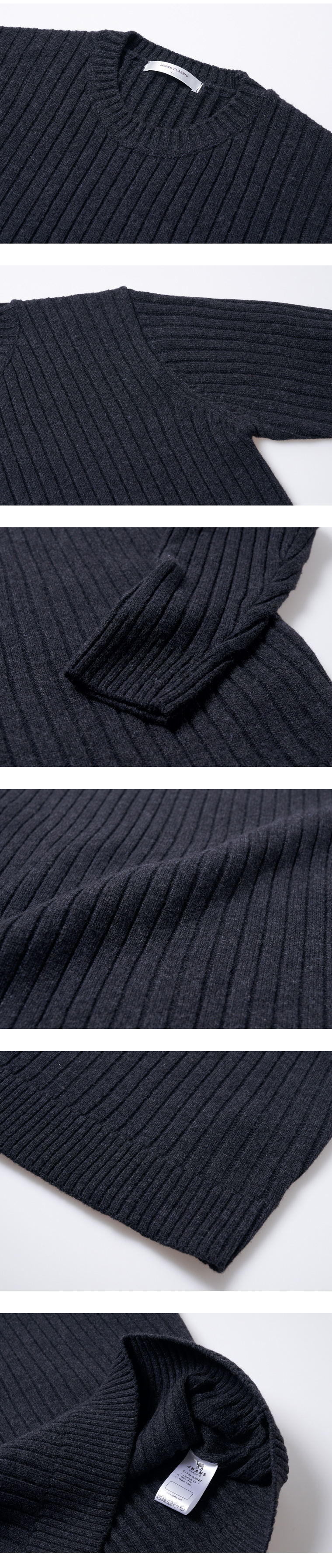 상품 정보 소재(%) - 울60%,아크릴20%,나일론20% 색상 - 다크그레이 치수 - M / L 제조사 - ㈜제이반스 제조국 - 대한민국 제조년월 - 2017.12 이후 립드 울니트 스웨터 단정한 느낌의 립조직 라운드니트입니다. 적당한 두께감과 높은 울함량의 원사로 밀도감 있는 골지조직이 고급스럽게 제작되었습니다. 단품으로 자켓이나 코트 등의 아우터와 부담없이 매치하기 좋으며, 셔츠와 레이어드 하면 더욱 더 멋스러운 연출이 가능합니다. 립조직 특성상 텐션이 좋아 착용감과 활동감이 매우 좋습니다. 권장세탁방법 제옷을 오래 입고 변형을 막기 위해 드라이크리닝을 권장합니다. 부득이한 경우 니트용세제나 중성세제를 이용해서 가볍게 손세탁을 하고, 니트전용 세탁망을 이용해서 탈수해야 보풀이나 변형을 줄일 수 있습니다. 데님이나 짙은 색상의 옷은 물빠짐이 있을 수 있으니 반드시 개별세탁 해주세요. 잘못된 세탁으로 인해 손상된 옷은 교환/환불이 어려운점을 미리 알려드립니다. | ||||||||||||||||||||||||||||||