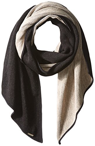 Calvin Klein Women's Double-Faced Angled-Edge Scarf, Black/Heathered Almond, One Size