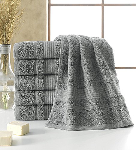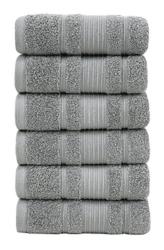 Berrnour Home Solomon Collection Bordered Design 16-Inch-by-30-Inch Turkish Cotton Hand Towel, 6-Piece, Grey