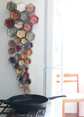 - Have a fridge? Then you have a spice rack. Clever kit includes magnetic jars and set of clear labels. Strong magnets keep jars from sliding; they even stick to a swinging refrigerator door. Jars are empty to fill with spices from your pantry. Decorative kitchen art, this attractive spice storage organizer will be the conversation piece in your home.