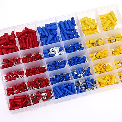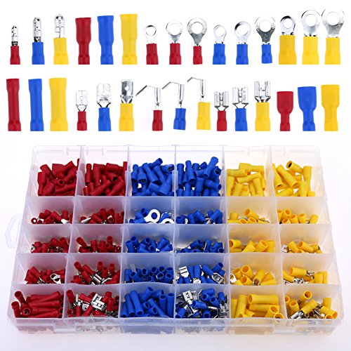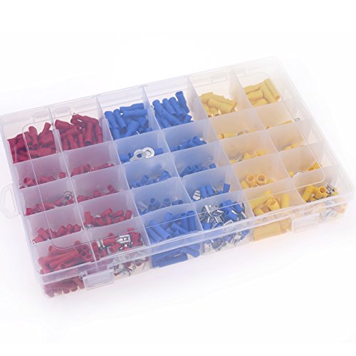 Glarks 750pcs 22-16 / 16-14 / 12-10 Gauge Electrical Insulated Quick Splice Fork Butt Female / Male Spade Crimp Terminals Connectors Mix Assortment Kit