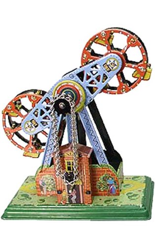 Product Description Twin Ferris wheels and riders - key-wind - made in China. Recommended for adult collectors. 6.25"H x 5.25"W x 3"D Alexander Taron Inc. was founded in 1949 0