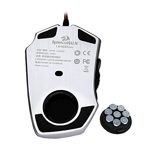 - Feature : Built for gamers by gamers ¡V up to 164000 DPI (On-the-fly DPI adjustment - 1000/2000/4000/8200/16400 DPI), 12000 FPS, 1000 Hz polling rate, 30G acceleration and an Avago sensor, Omron micro switches. / 22 programmable buttons, 5 customizable memory profiles, an 8-piece weight tuning set (2.4g x 8), and over 16 million color options (LED lighting can be disabled) / Built Redragon tough with an aluminum base, high-end 6ft braided-fiber cable with gold-plated USB connector for greater durability and signal accuracy. / Durable smooth TEFLON feet pads and contoured body for ultimate gaming control (perfect for left/right handers). High-end features including: 24 buttons, 3-shot rapid fire button, adjustable lighting options in 5 color modes, and 16 programmable side buttons (MMO or FPS). / Mouse tuning software for infinite personalization for any and every game you play.