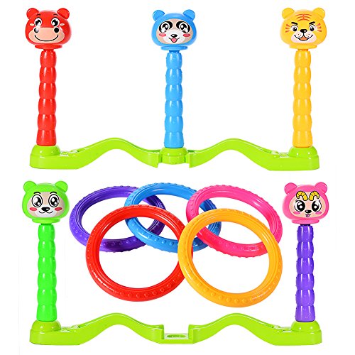 Classic ring toss game of high quality plastic material, safe for kids to play with, funny cartoon toss quoits scoring game, suitable for both indoor and outdoor.