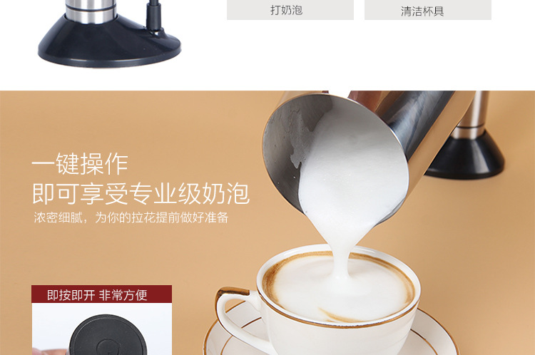 - Easy To Use: Smart one-touch-button design means you do not need to hold the button during the whole foaming process. Handheld size, stainless steel handle will make you feel to be more comfortable. Simply press the black button on the top of the handle once and wait for 20 to 30 seconds, your creamy coffee milk drink is ready.