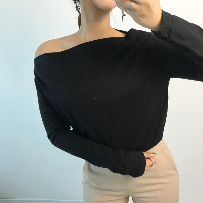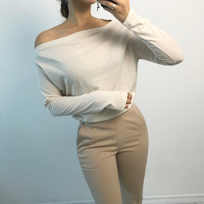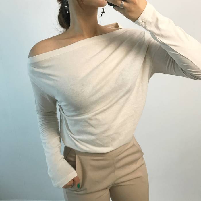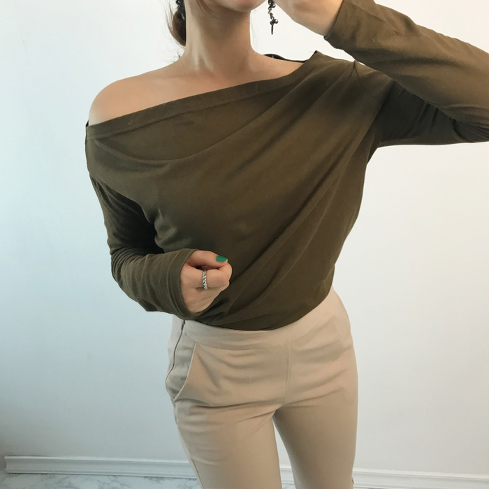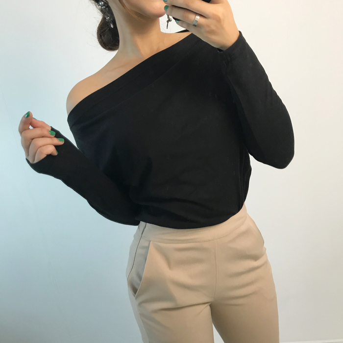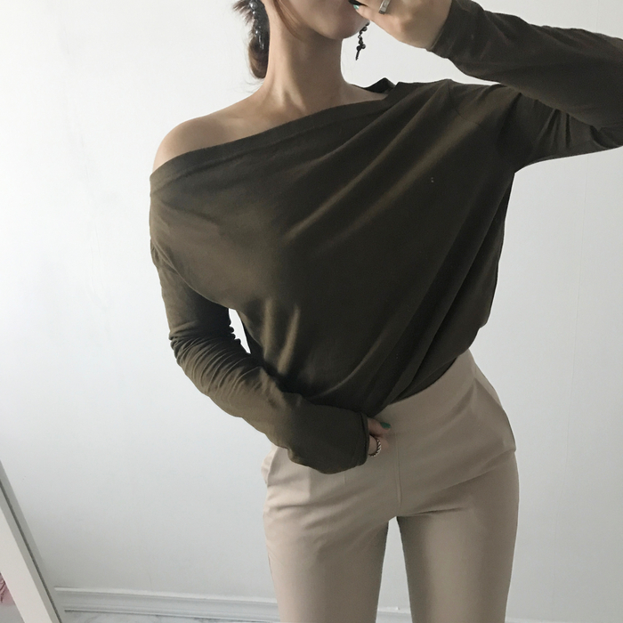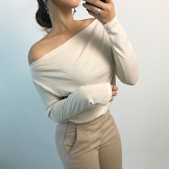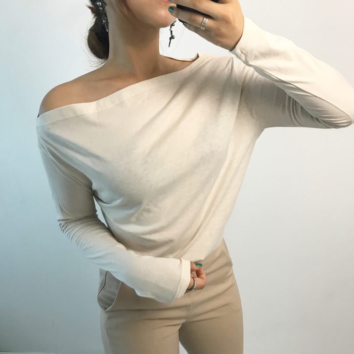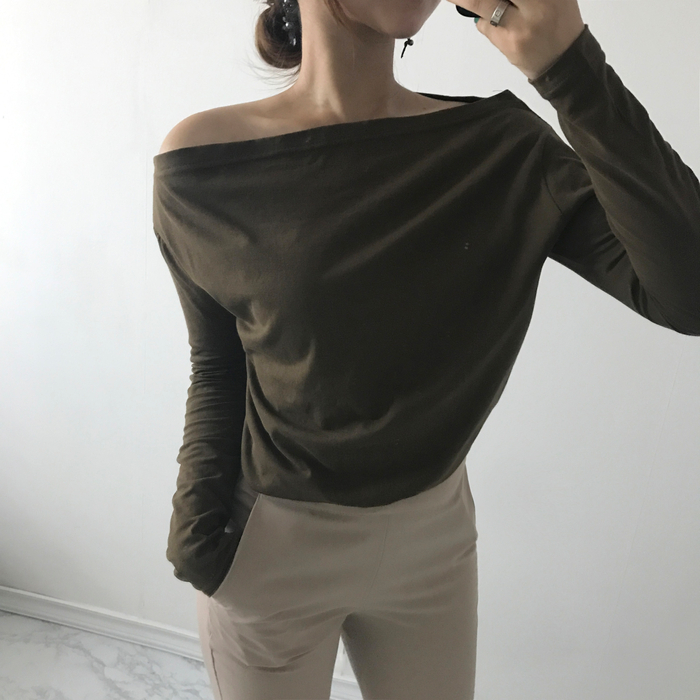 Plain Off-Shoulder Polo On-Breeze Women's Autumn Tea Shoulder Top Tip Summer Long Sleeve Blouse