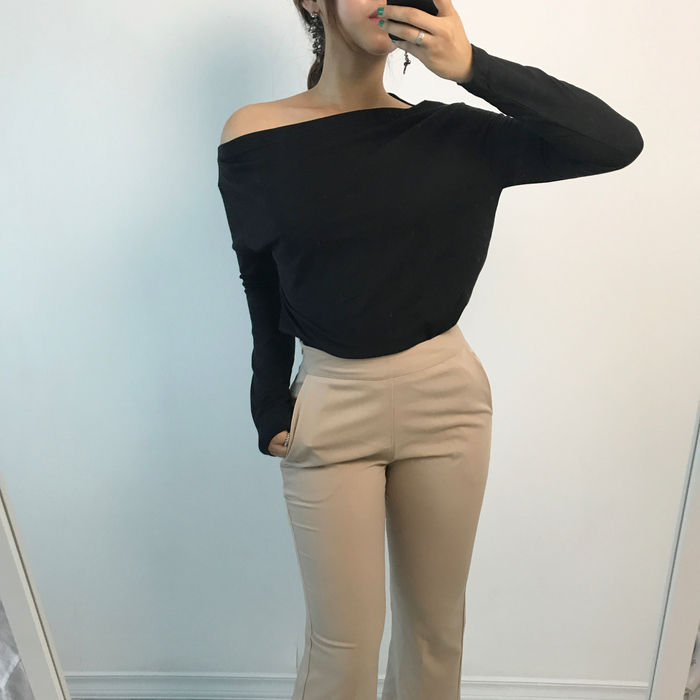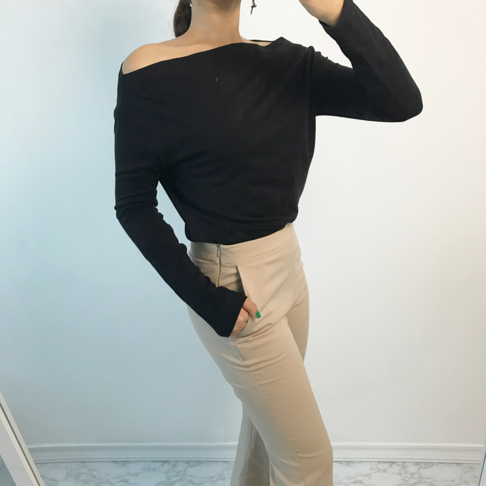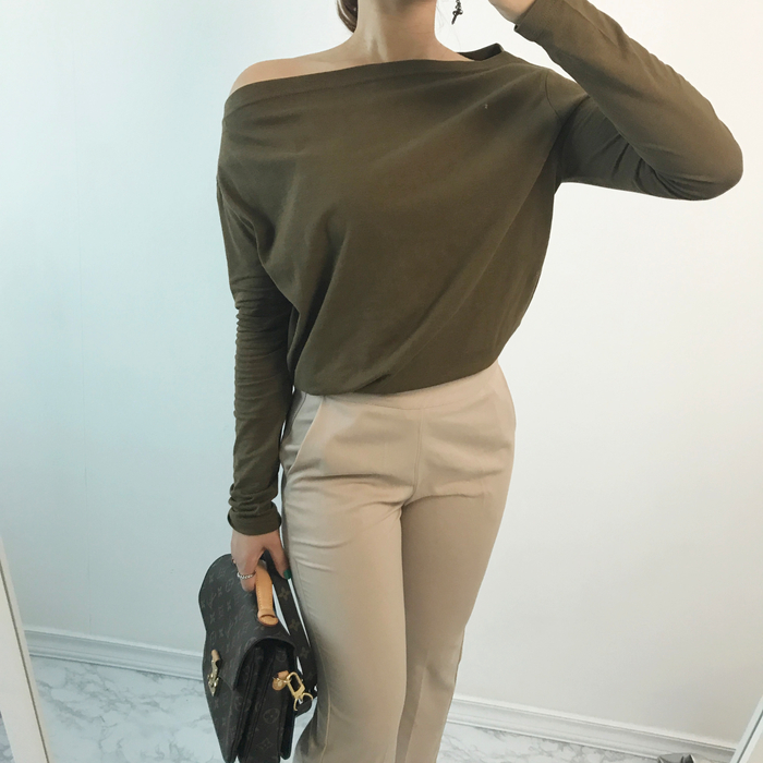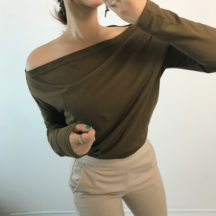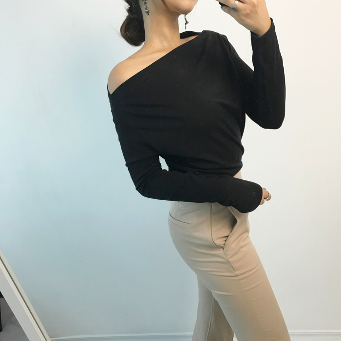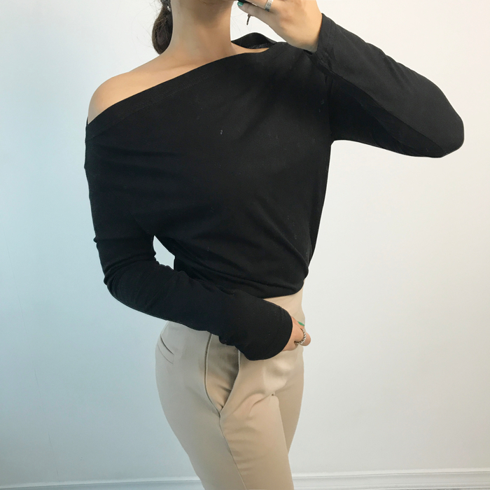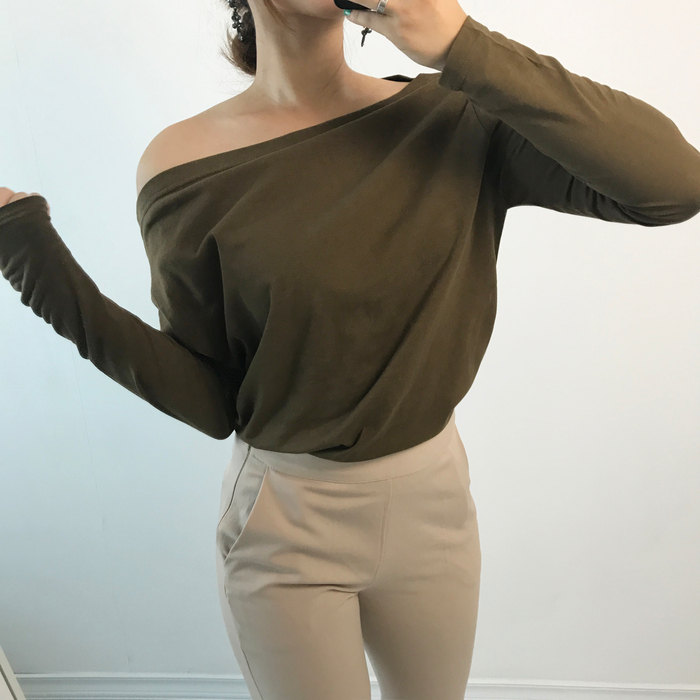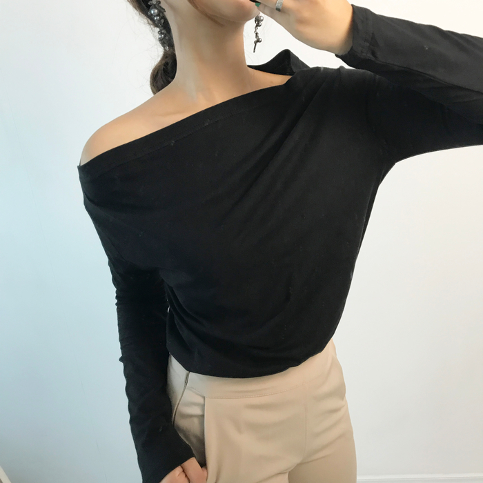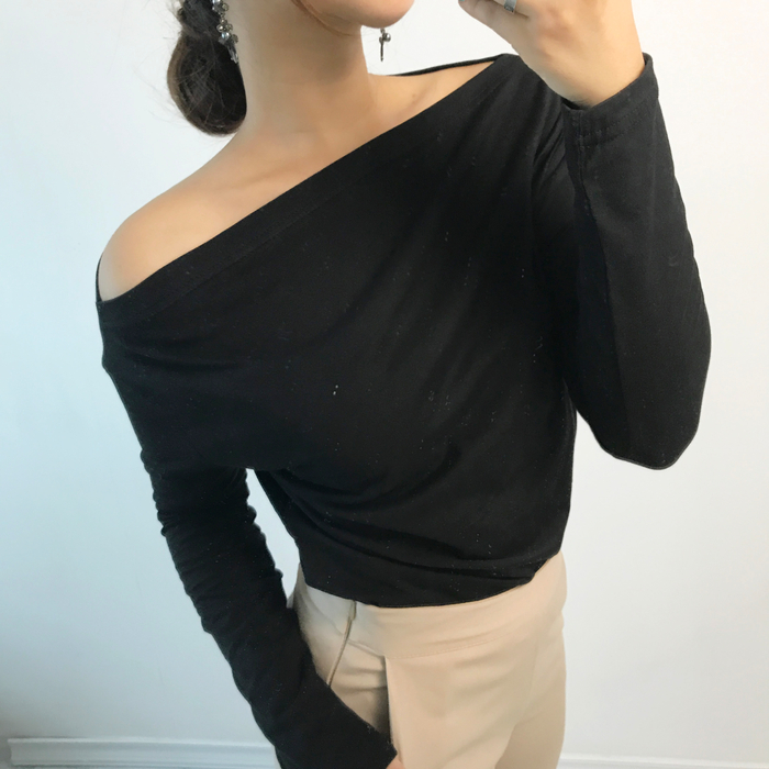 Plain Off-Shoulder Polo On-Breeze Women's Autumn Tea Shoulder Top Tip Summer Long Sleeve Blouse