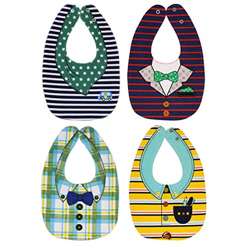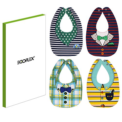 EGOFLEX 4-Pack Premium Baby Bibs Set - Burp Cloths, Teething, Feeding, Drooling Reversible for Babies Boys with Adjustable Snaps