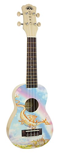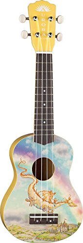 Studio : Luna Publisher : Luna Binding : Electronics Product Description Luna Aurora Ukulele Half-Size Guitar with Funky Designs By popular demand, Luna's favorite Aurora guitar designs - the Mermaid and Dragon - are now available as children's ukuleles. Another design, the Aurora Peace Uke, is designed by Luna's founder Yvonne de Villiers, based on Sixties poster art. The Peace Uke speaks to the inner wild child in us all, with colorful original artwork by Yvonne de Villiers. Based on Sixties poster art, "Peace, Love and Music" are celebrated in colorful words and images that raise a smile. Petite size and nylon strings make it an instrument that's ideal for learning, and comfortable to play. Though designed for children, the Tribal Teal Peace Uke is sure to speak to flower children of all ages. The Dragon-themed ukulele features a cool yet warm yellow fret piece with colorful rainbow and a dragon under the strings. Lastly, the Mermaid designed ukulele features a wonderful cool water blue color with a mermaid swimming around. All 3 options are an excellent choice for him or her. This makes the perfect gift for anyone looking to expand their music knowledge and learn how to play the Uke, or simply those looking for an added item to their playroom. It's small design allows easy to carry and bring with you to the beach or park. Bring it on vacation or play in the basement. Features: 1/2 Size Ukulele (Soprano Size) Funky, Colorful Sixties Design Nylon Strings Great for learning or playing Choose from 3 options available: Dragon, Mermaid, Peace Buy from an Authorized Luna Aurora Dealer 0