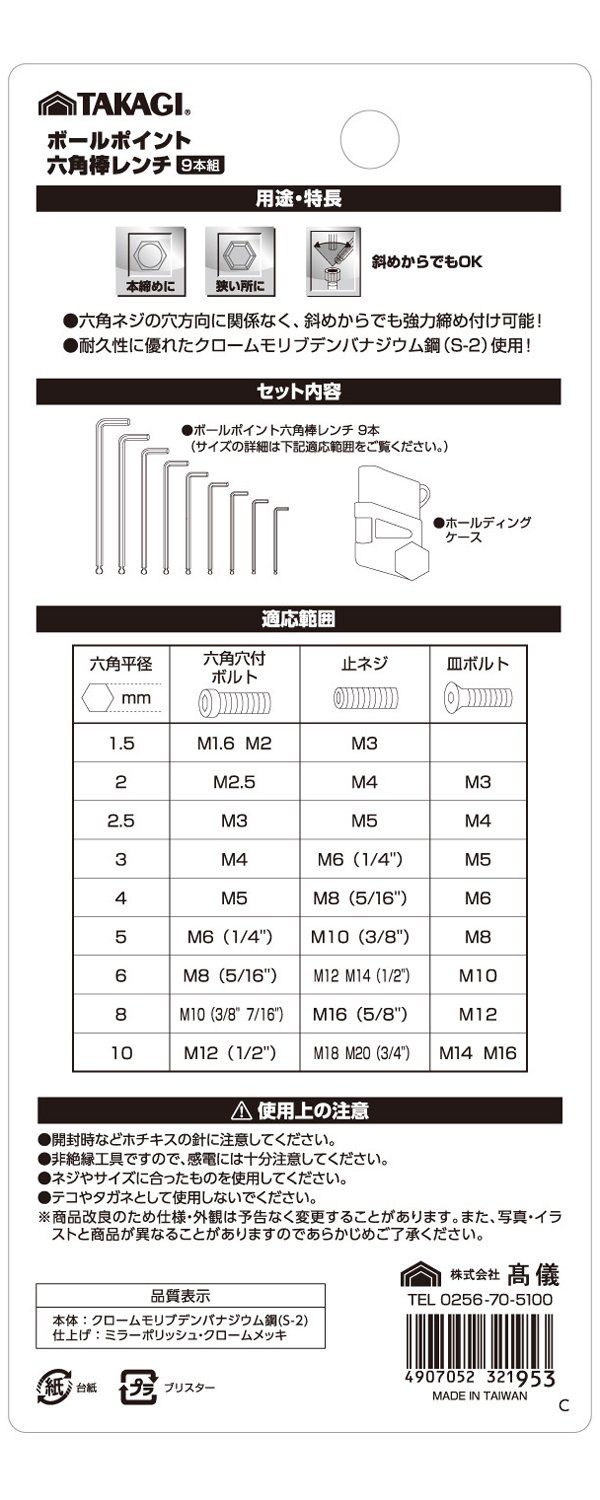 It can be tightened strongly even from an oblique direction regardless of the hole direction of the hexagonal screw