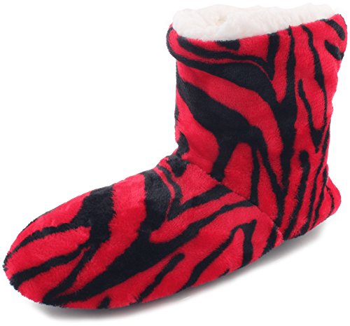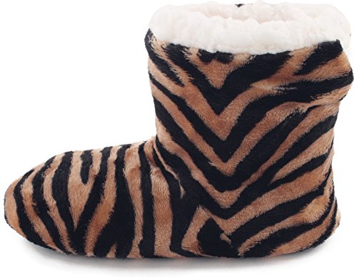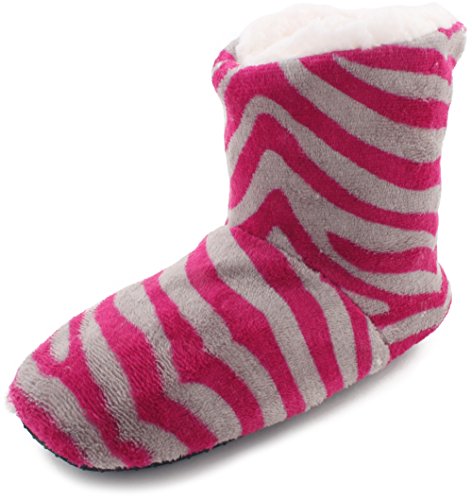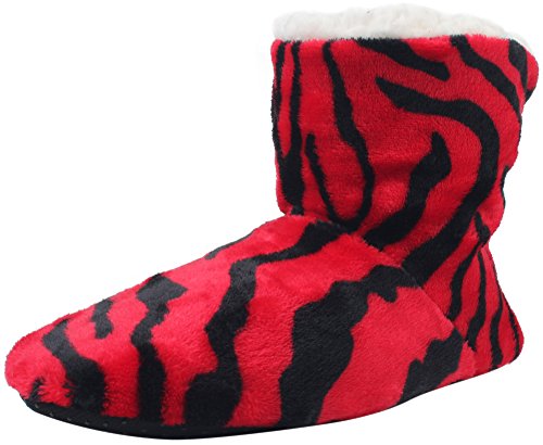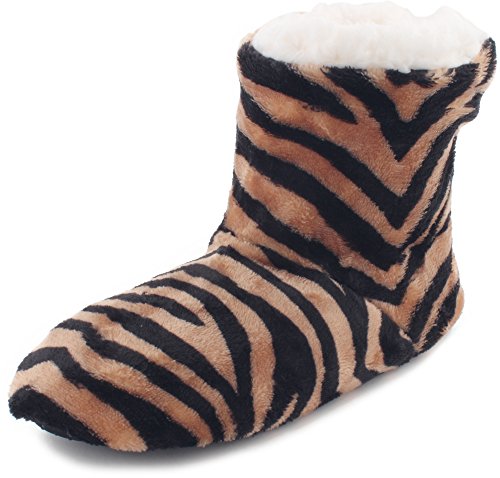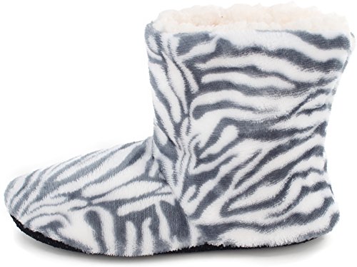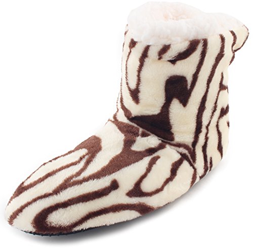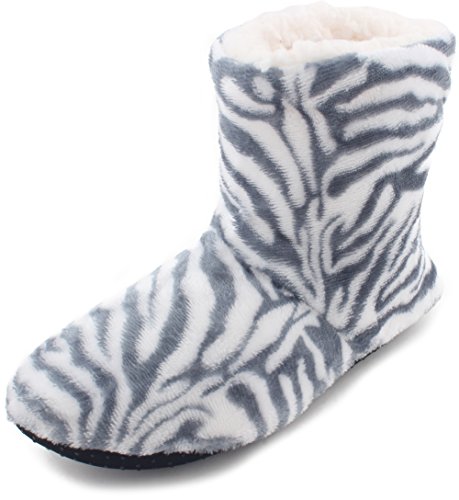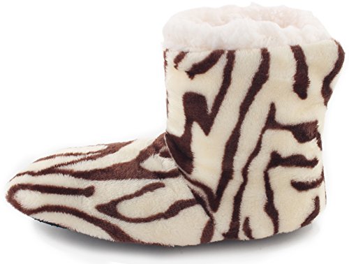 | Enimay Women's Fashion Plush Faux Fur Zebra Print Indoor Non Slip House Slippers |