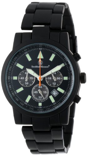 -. Binding : Watch -. Brand : Smith & Wesson -. Department : mens -. EAN : 0024718116907 -. Feature : Water resistant up to 30-meters (90-feet) / Scratch resistant hardened mineral glass crystal protects the dial of the watch / Features precision quartz Japanese movement / Includes (3) hands to show the hours, minutes and seconds / Comes with a 1-year limited warranty -. Label : Smith & Wesson -. Manufacturer : Smith & Wesson -. Model : SWW-169 -. MPN : SWW-169 -. NumberOfItems : 1 -. PackageQuantity : 1 -. PartNumber : SWW-169 -. ProductGroup : Watch -. ProductTypeName : WATCH -. Publisher : Smith & Wesson -. Studio : Smith & Wesson -. Title : Smith & Wesson Men's SWW-169 Pilot Black Stainless Steel Strap Watch -. UPC : 096518359471