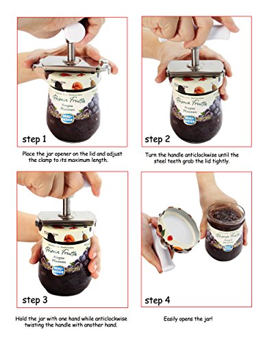 EASY TO TWIST. The steel teeth on the clamp grab the edge of the stubborn lid tightly and hold it the entire time you are twisting. Easily opens most jars with a simple twist! May Not Suit for wine bottle open.