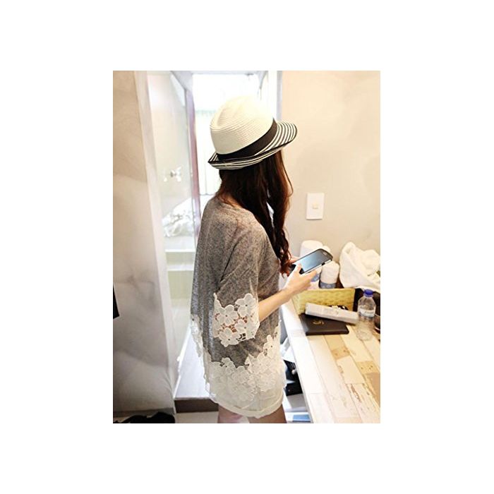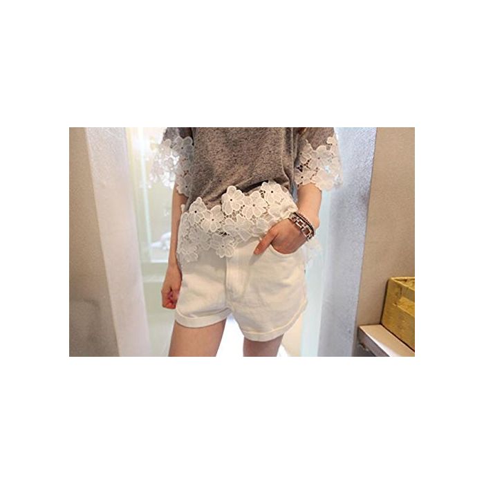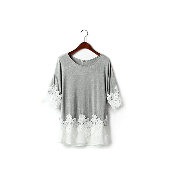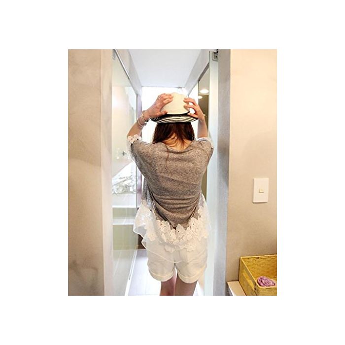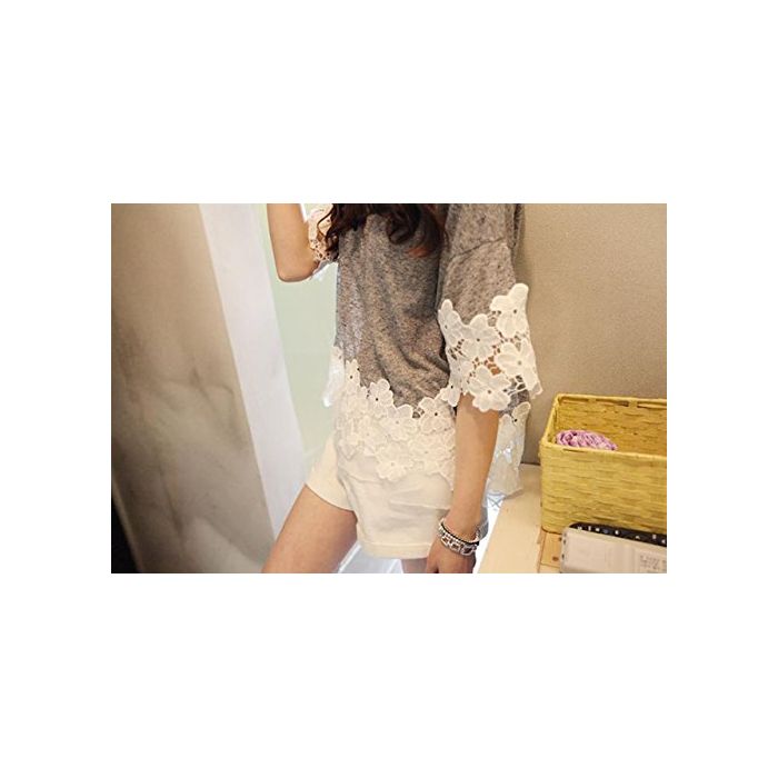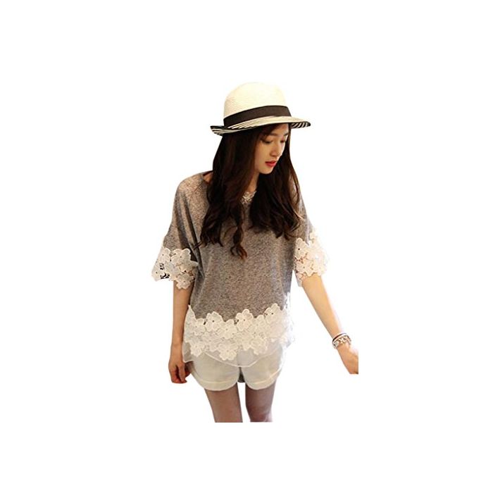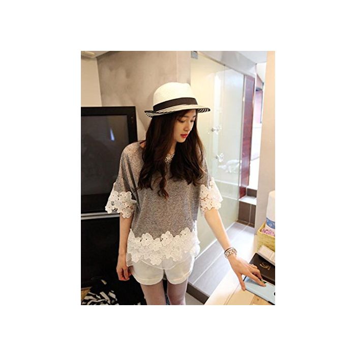 Ange select ange select 착용감 넉넉하게 꽃무늬 레이스 코튼 컷소우 반소매 레이디스 심플 T 셔츠 (블랙)