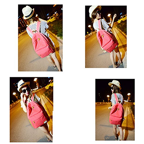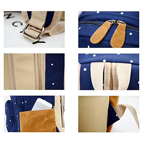 -. Title : Nasis Vintage retro Damen klein Punkt Design Canvas Segeltuch Rucksack Daypacks Campus College Camping und Außflug Multifunktion AL5066