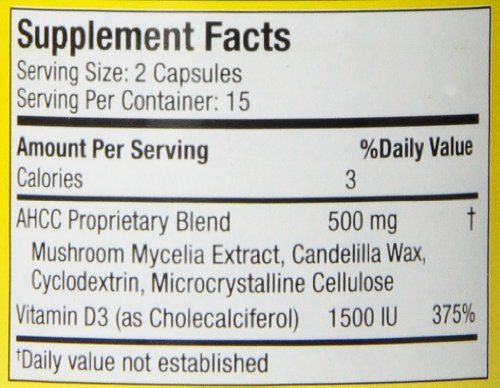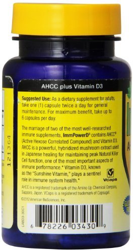 -. Feature : Immpower-ahcc (active hexose correlated compound) is a hybridized mushroom extract that provides unsurpassed support for the immune system's front line defenses / Vitamin d3, commonly known as the "sunshine vitamin," has always been known for its beneficial effects on bone and joints. / Gives customers two of the most well-researched, powerful immune supplements in one capsule