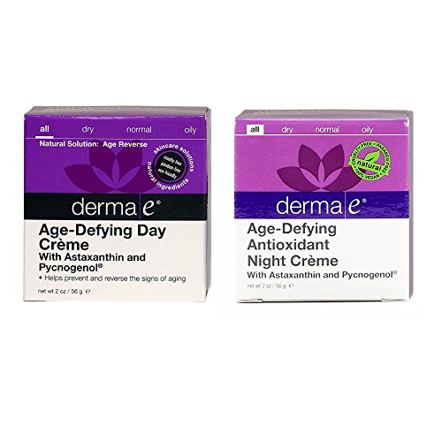-. Binding : Misc. -. Brand : derma e -. EAN : 0636431704622 -. Feature : This bundle includes one 2 oz. Derma E Age Defying Day Creme and one 2 oz. Derma E Age Defying Night Cream, making it the perfect daytime and nighttime all natural organic skin care product bundle / Reverse the visible signs of aging, diminish the look of skin irregularities and soothe irritation with this ultimate antioxidant-rich daily moisturizer high in vitamin C, vitamin E, lavender extract and jojoba essential oil / Staxanthin is 500 times more powerful than Vitamin E in neutralizing free radicals, and Pycnogenol¨ is 50 times more potent than Vitamin E in fighting free radical damage / Powerful antioxidants are infused into this high-potency nighttime moisturizer that helps diminish the look of fine lines and wrinkles, promotes visible recovery from environmental stresses and promotes a smoother, more youthful complexion / Age defying cream set is cruelty-free, paraben-free, sulfate-free, mineral oil-free, lanolin-free, gluten free and GMO-free -. IsAdultProduct : 0 -. Label : Derma E -. Manufacturer : Derma E -. PackageQuantity : 2 -. ProductGroup : Beauty -. ProductTypeName : BEAUTY -. Publisher : Derma E -. Studio : Derma E -. Title : Derma E Age Defying Day Creme and Night Cream Bundle With Anti-Aging Serum for Wrinkles, Line Remover, Antioxidants, Free Radical Removers and Jojoba Essential Oil for Radiant Complextion, 2 oz. each -. UPC : 636431704622