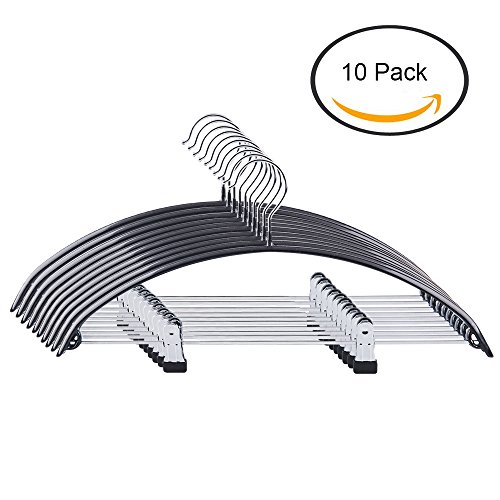 -. Feature : Size: 16.75" x 8"; Pant bar measures 14.75"; Clip opening measures 3/4" / Carefully formed to preserve garments, eliminate shoulder bumps. Black dipping plastic coating, smooth and delicate without sharp edges pretect you and your clothes well. / 10 Pack; Dimple & Crease Free Hanger Design; Elegant arc-shaped design prevent your clothes from falling and keep them in natural shape without any crease. / Upgrade with pants hanging bar & strong clips with non-slip coating. / Space-efficient design maximizes storage space.