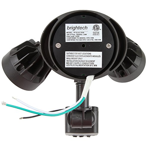 Have twice the security for your property as you substantially reduce your power bills! Brightech's LightPRO LED Security Light provides an innovative solution to replacing outmoded halogen or expensive incandescent floodlights. Two independently rotating light heads made of steel house ultra-bright 10.5-watt LEDs. Drawing a total of only 21 watts, these intensely vivid lights rival the glow of 100-watt traditional bulbs.They slash your electricity consumption. They last 50,000 hours. No more constantly having to stand on ladders to replace burnt-out bulbs. Now you can relax as these motion sensing, dusk-to-dawn lights brightly secure your garage, storage space, deck, or workshop. This waterproof fixture (IP65) features impact-resistant plastic lenses.