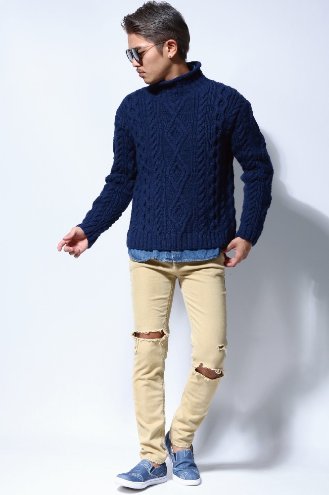 立体感のあるケーブル編みがコーデのアクセントとなり、季節感をプラスしてくれるデザイン。