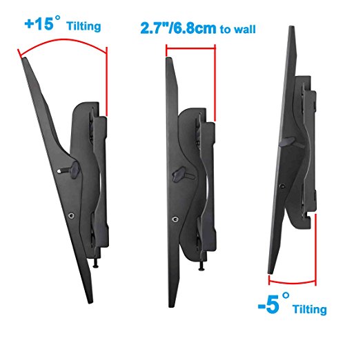 - Feature : +5°/-15° tilting angle and tool free knob handle for tilting angle adjustment, simply pull for continuous tilt motion for most kinds of TV. / Fits 8", 16", 18"or 24" studs plus concrete wall. Large distance to wall/sufficient operating space makes it easy for large TV tilting and cable input access at the back of TV. Suitable for mounting large TV. / Only 3 parts (1 wall plate + 2 brackets) construction easy for assembly and installation. / Automatic robot welding technology makes whole unit sturdy thus ensures mounted TV stable and secure and makes welding joint smooth thus whole unit with good appearance. / Premium model fits for most of 42-70" LCD/LED/Plasma TVs up to weight of 110 lbs and up to VESA(mounting hole pattern) 600x400mm (Fits for VESA 75X75, 100X100mm, 200X100mm, 200X150mm, 200X200mm, 300x200mm, 300X300mm, 400X200mm, 400x300mm, 400X400mm, 500x300mm, 600x200mm, 600x400mm). Please check VESA (mounting hole patern), stud spacing, possible blocked cable/input and TV weight prior to making purchase decision to determine whether this TV wall mount fits your TV and the installation application.