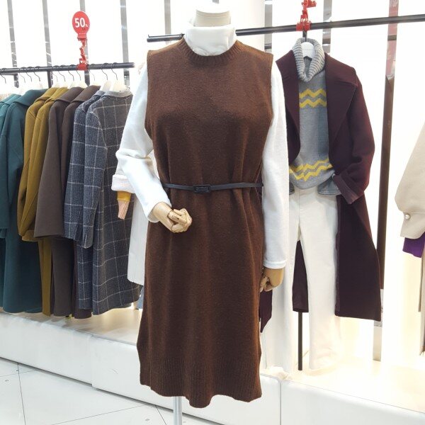 부드러운 소재감의 라운드 조끼니트원피스입니다.넉넉한핏감에 신축성이 좋아서 활동하기 좋은 제품입니다.벨트로 허리핏라인을 잡아줄수있어 페미닌한 여성스러운 연출이가능한 아이템입니다.